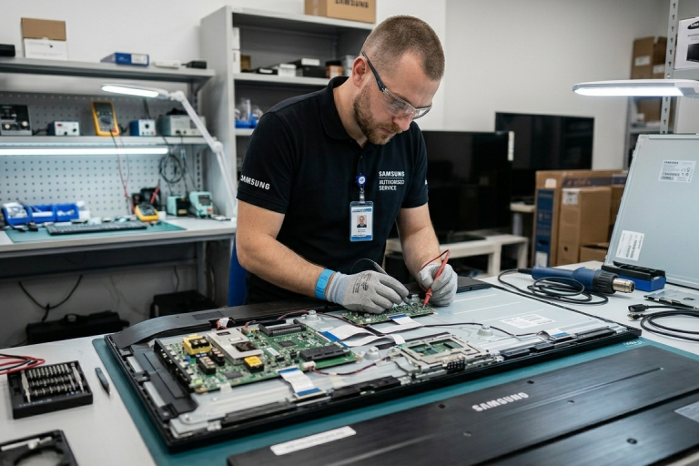Reparamos equipos de audiovision de la marca Samsung en periodo de garantía, realizando diagnóstico, reparación y sustitución de componentes según los procedimientos oficiales del fabricante. Gestionamos las incidencias de forma ágil para garantizar una rápida resolución al cliente.